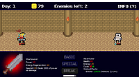 Based on feedback and other stuff, I polished up the game post jam. Upgrade system rebalanced and fixed. Weapons no longer grow exponentially in strength. Increased starting gold and gold acquisition...